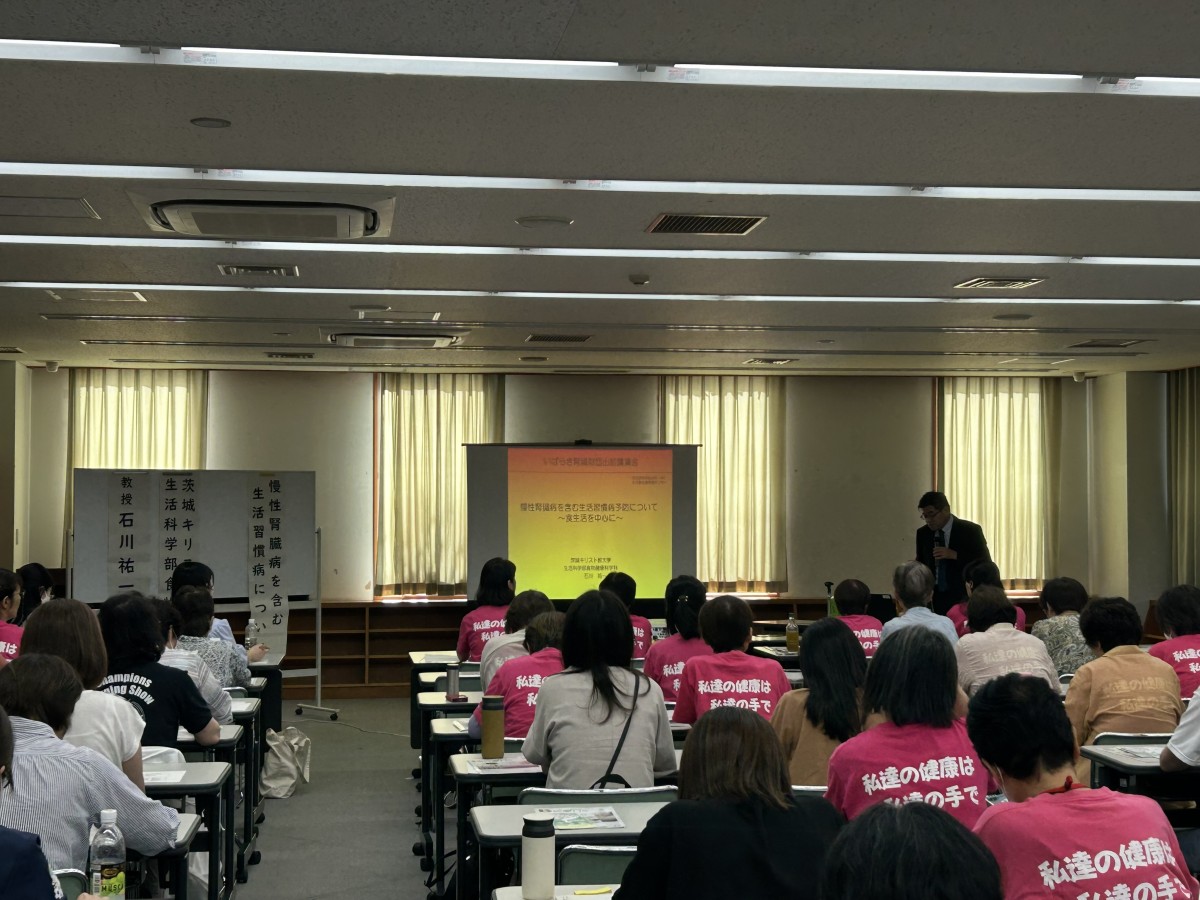 9/24(水)慢性腎臓病予防出前講演会 開催報告 2025 11/26 イベントレポート 慢性腎臓病(CKD)予防出前講演 2025年10月1日2025年11月26日 竜ケ崎保健所管内食生活改善推進員協議会の皆様に当財団の慢性腎臓病予防出前講演会を聴講して頂きました。 慢性腎臓病予防を含めた生活習慣病予防について食生活を中心とした講演で、皆様に熱心に聴講して頂きました。 ありがとうございました。 イベントレポート 慢性腎臓病(CKD)予防出前講演 11/9(日)市民公開講座(健康フォーラム2025inつくば) 9/25(木)いのちの学習会開催報告