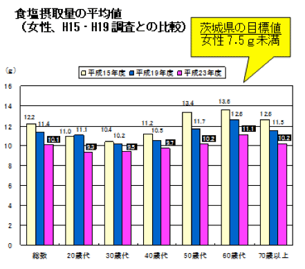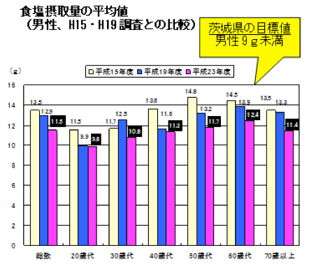平成23年度においてはどの年代・性別ともに摂取量の平均値は下がってきているものの、