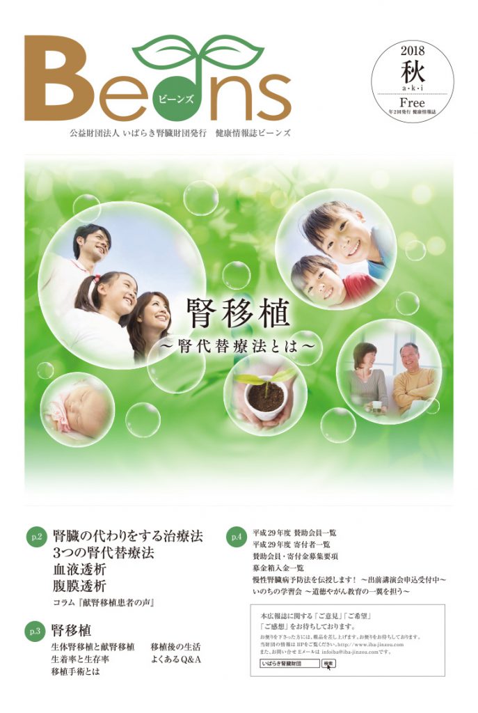 健康情報紙Beans2018秋号(第16号)を発行いたしました。
