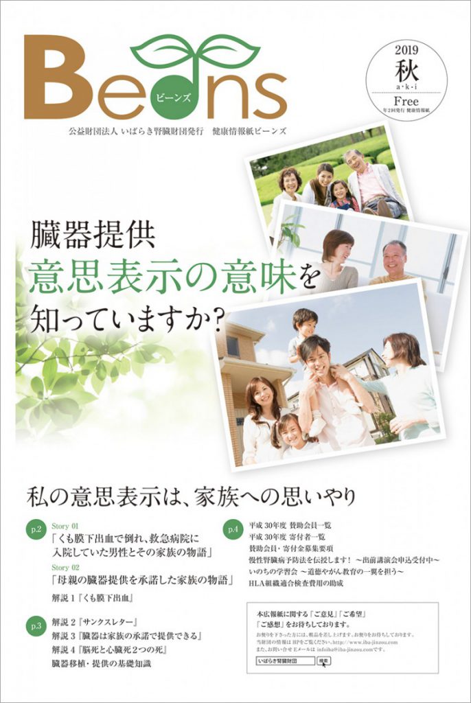 健康情報紙Beans2019秋号(第18号)を発行いたしました。